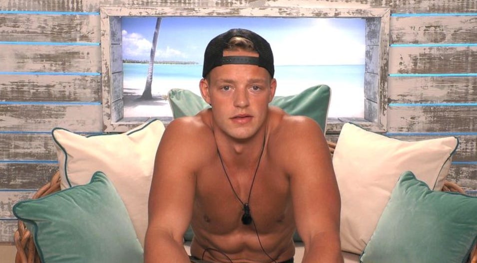 The way that the show Love Island works is, you select a cadre of hot dumbasses and put them in a televised ape cage and force them to play gorilla sexual politics.