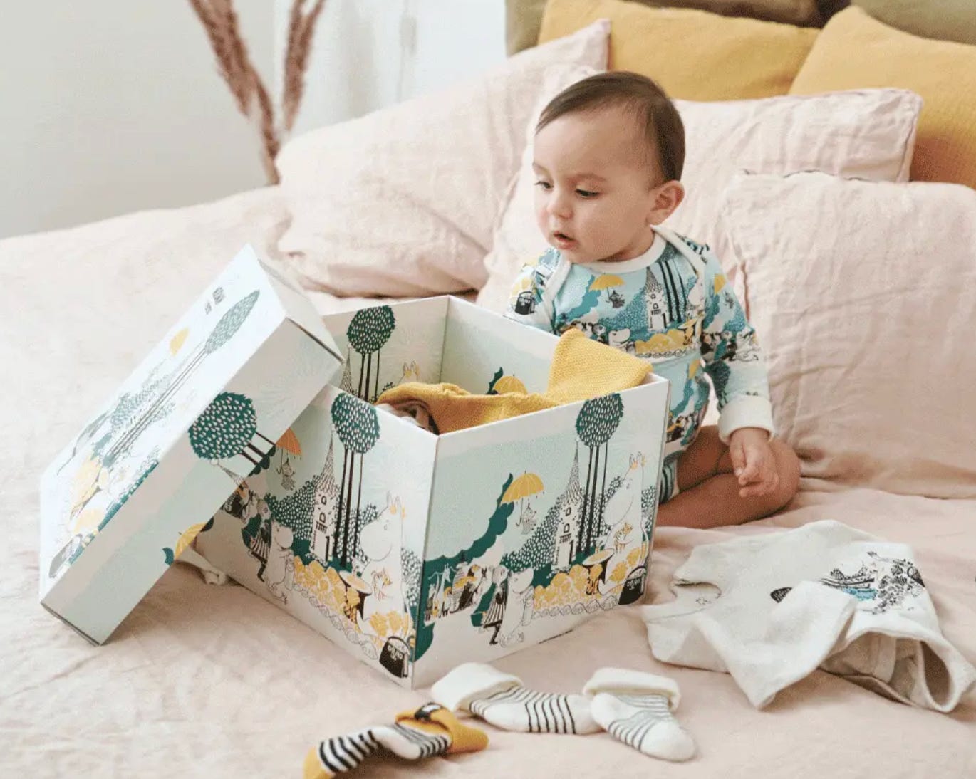 The Finnish baby box is a maternity package given to new parents by the Finnish government that includes a variety of baby essentials like clothes, diapers, and a mattress. The box itself is designed to function as a safe first crib for the baby and was introduced in the 1930s to help reduce a high infant mortality rate by providing a safe sleeping space and necessary supplies to all children, regardless of their socioeconomic background.