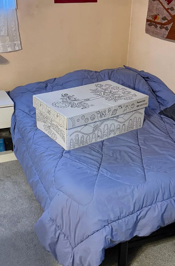 Doug really wanted one. This is how I discovered that, in America, there was a colossal lawsuit from Big Bedding to get this cardboard classified not as a crib but rather as a Bespoke Child Suffocation Apparatus: in 2021 the USCPSG ruled that “baby boxes” were an unsafe form of bassinet and criminalized them.
